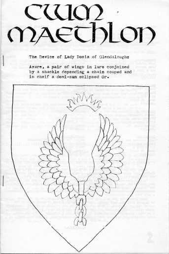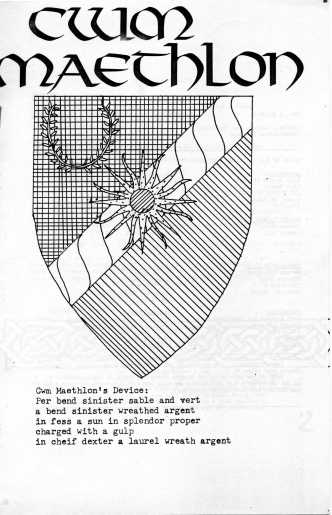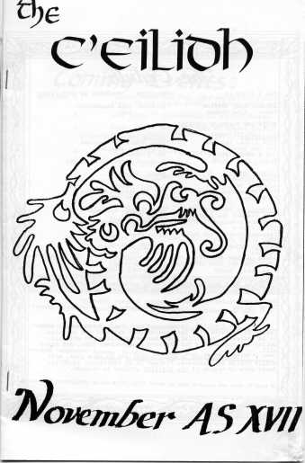 The Provo/Orem area, Utah (about 45 miles south of Salt Lake City) is home to Brigham Young University (and nowadays, Utah Valley State College). Though the number of active SCA folk there is often large enough to support a shire, the transient nature of college students (half the population of the city of Provo, numerically, is college students) makes it hard to keep a steady roster of officers. Back in the early 1980s, the area made a stab at being a shire, and managed it for several years. I happen to have some copies of their newsletter, The C'eilidh, because one of my mundane sisters, Lady Eveleen the Unnoticed, was their first chronicler.