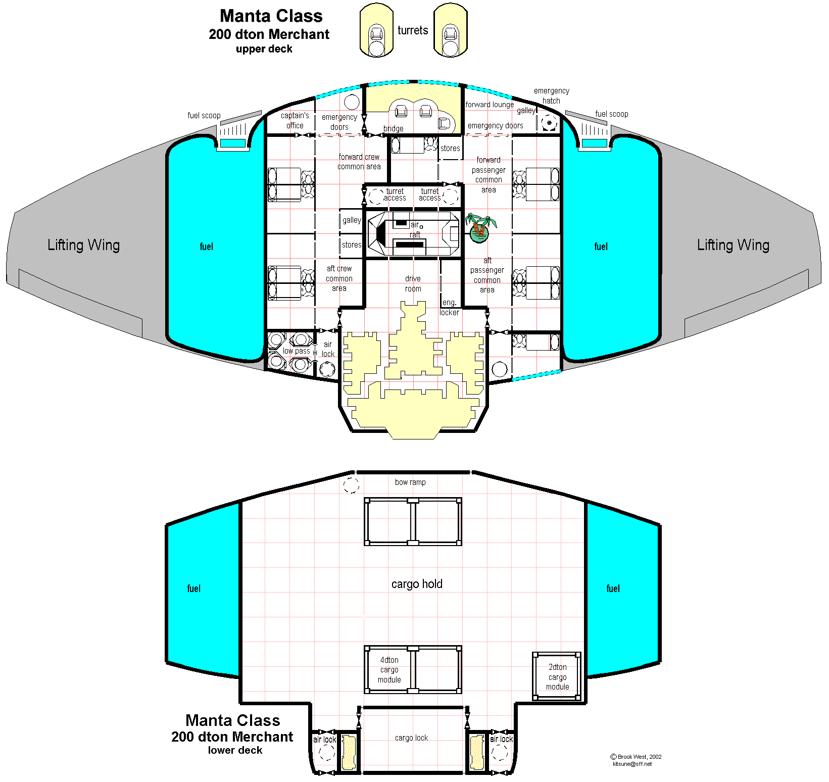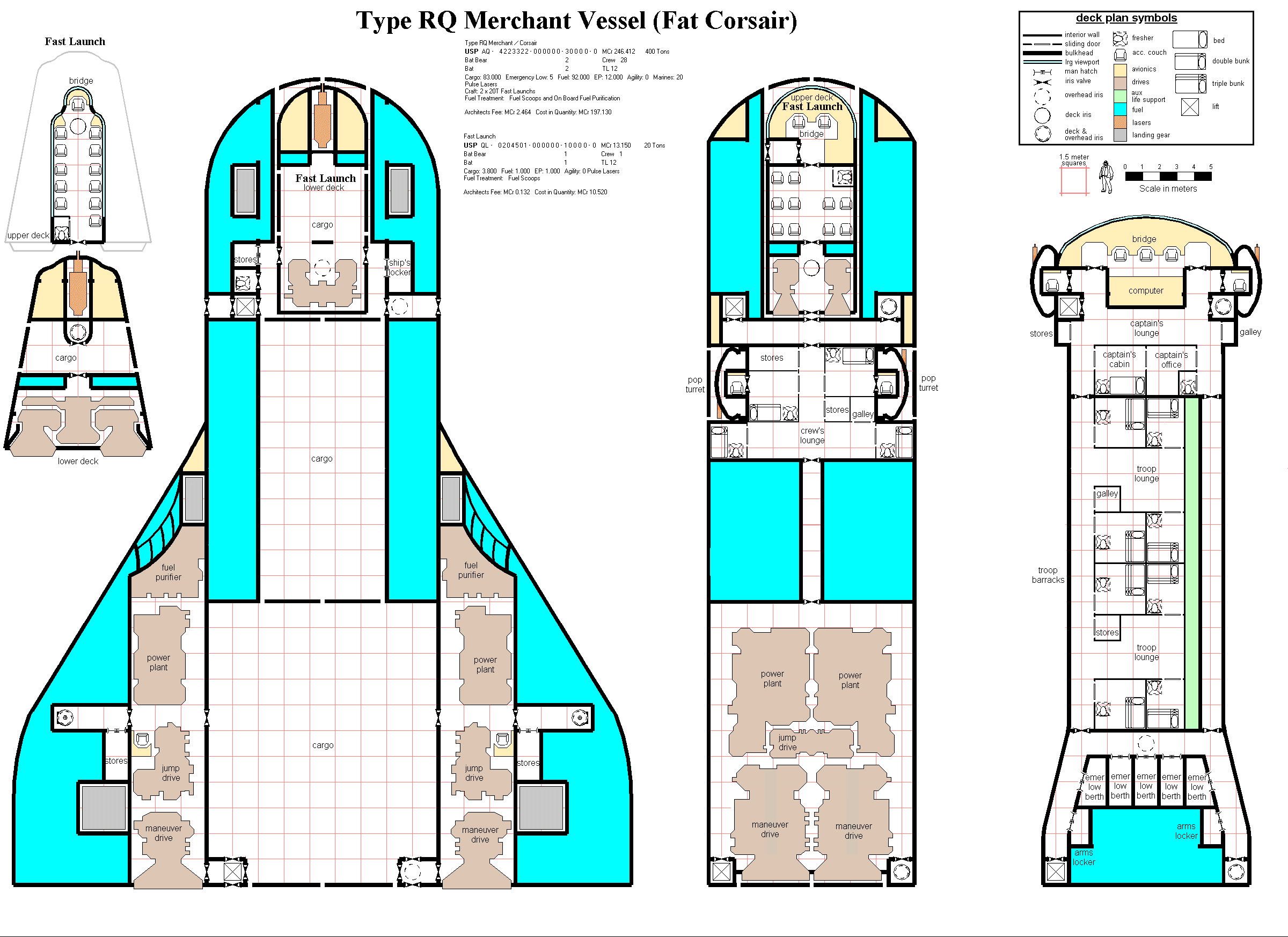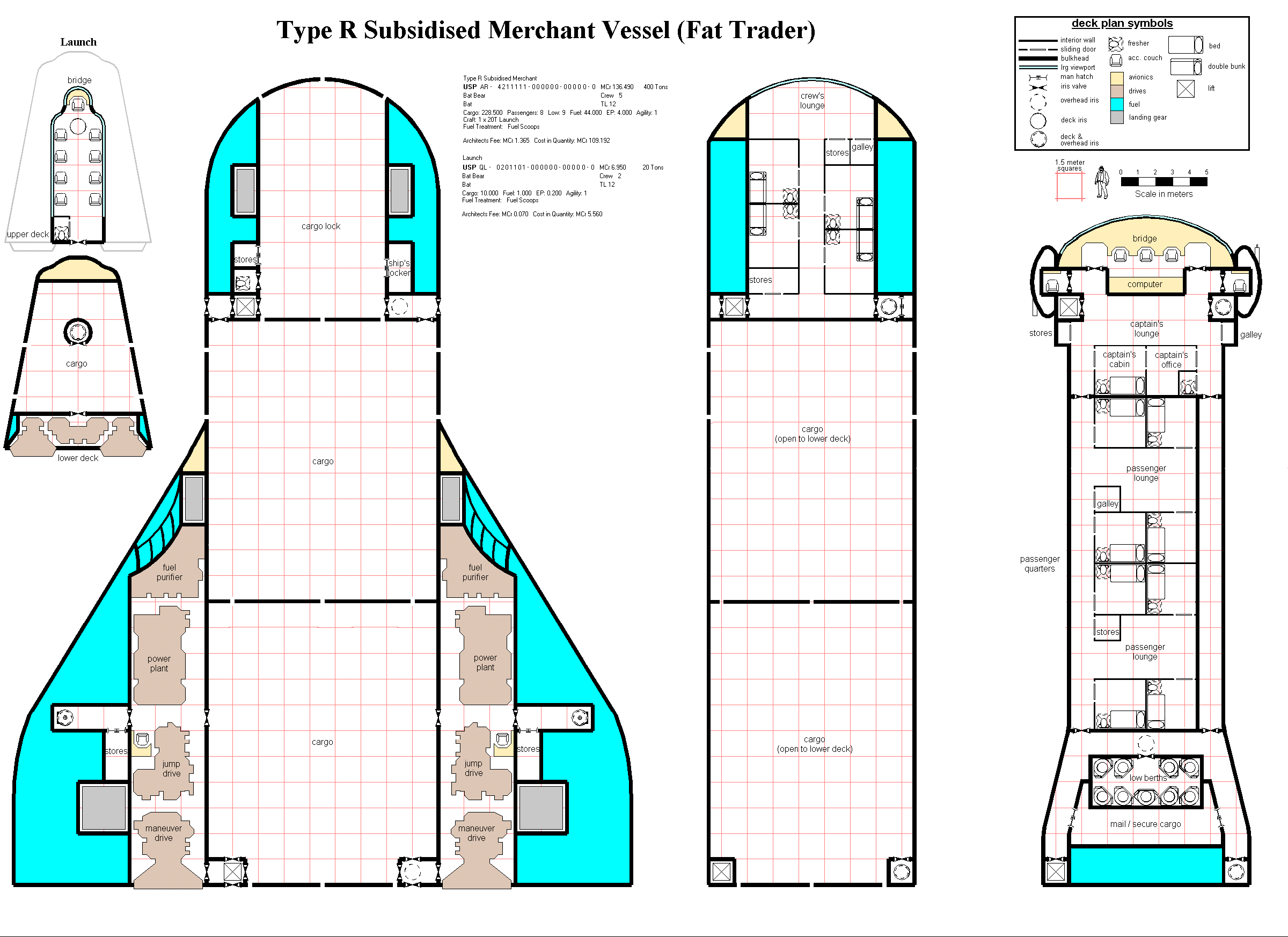 Corrected deckplan design -- the deckplans in CT Traders and Gunboats are actually about 1200 dtons. |